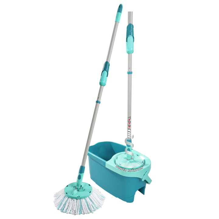 Unul dintre punctele forte ale acestui set este mecanismul de rotatie integrat in maner, care permite o centrifugare rapida si eficienta a mopului. Acest sistem este la fel de eficient ca si stoarcerea manuala, dar fara efortul fizic asociat.