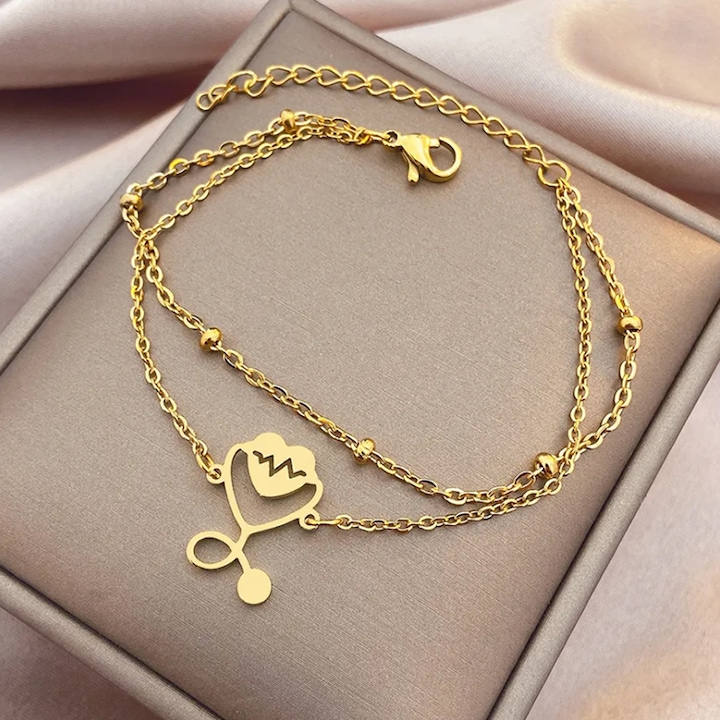 Bratara cu pandantiv inima si stetoscop este un cadou simbolic si rafinat pentru doctori, reprezentand pasiunea si dedicarea lor pentru ingrijirea pacientilor.
