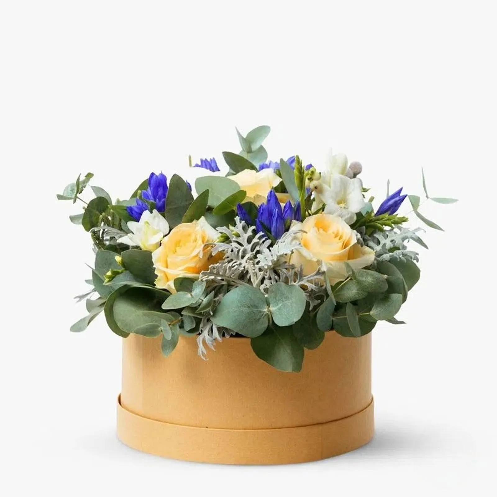 Un aranjament minunat cu trandafiri intr-o cutie eleganta.