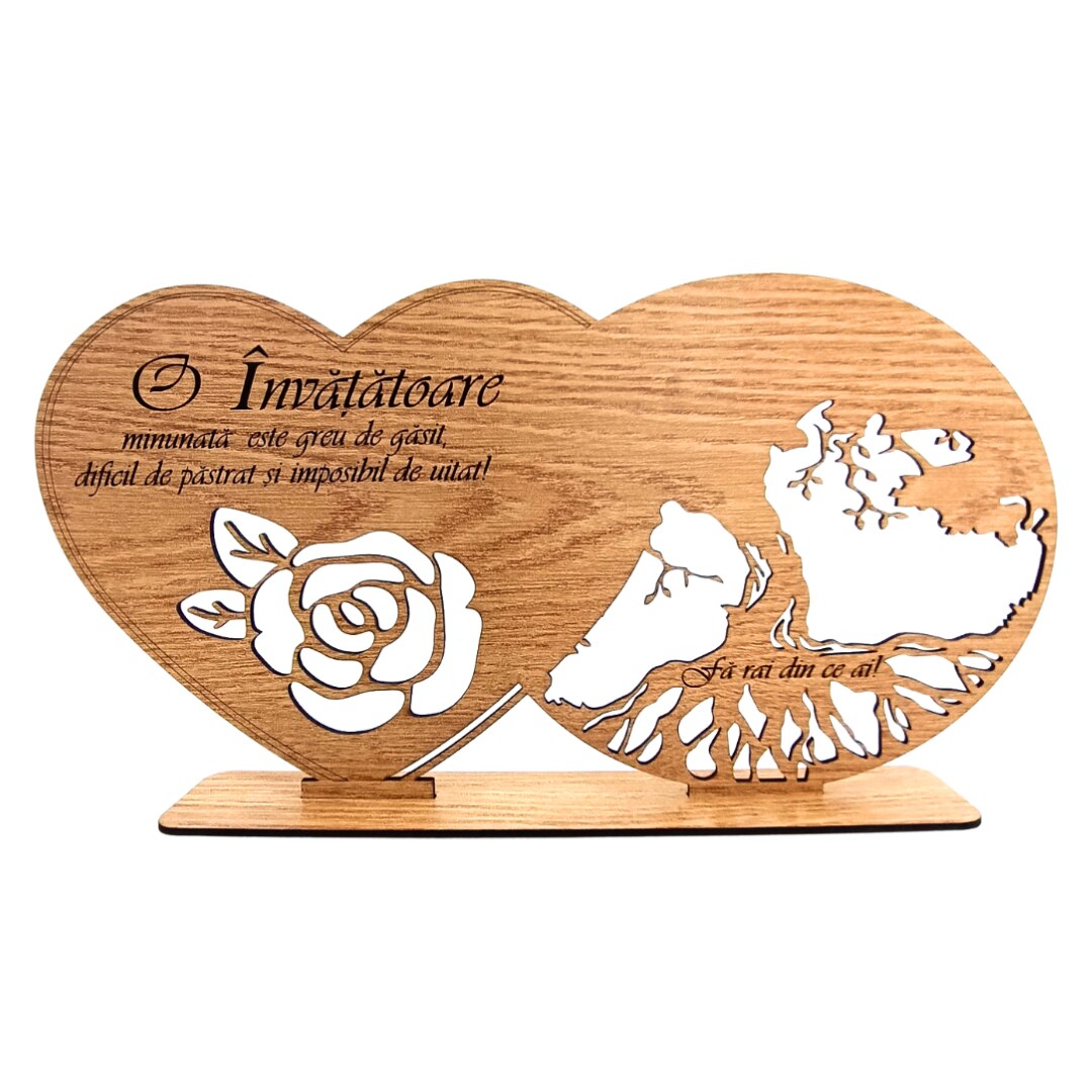 Un mesaj din inima de la copilul tau pentru doamna invatatoare care va ramane mereu gravat pe o bucata de lemn sculptat cu atentie.