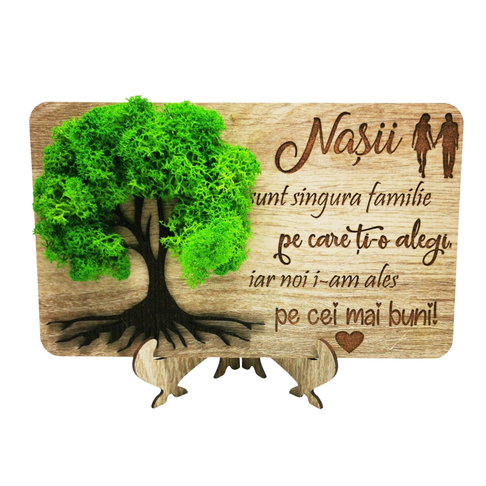 Tablou cu licheni gravat cu mesaj pentru nasi